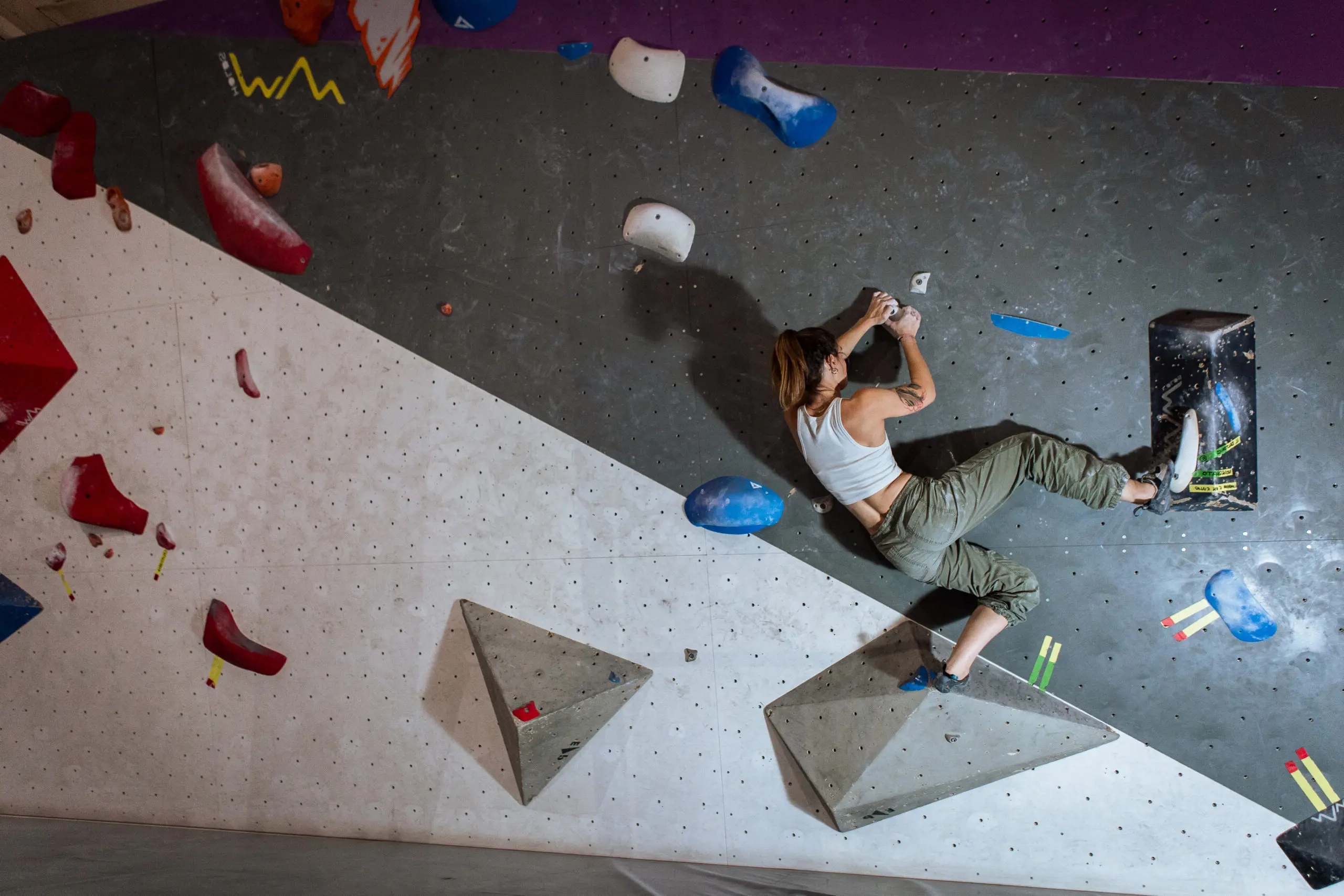 Prestiamo grande attenzione alla qualità degli spazi e alla tracciatura. I percorsi vengono rinnovati settimanalmente per offrire stimoli sempre diversi, sia ai principianti sia agli arrampicatori più esperti.